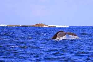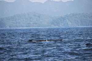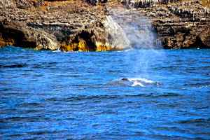 1日コース。 まずは北上していると、早速ザトウクジラを発見! 親子とエス …