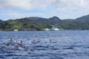 出港日の午前半日コース。 出港してすぐに、二見湾内でハシナガイルカを発見 …
